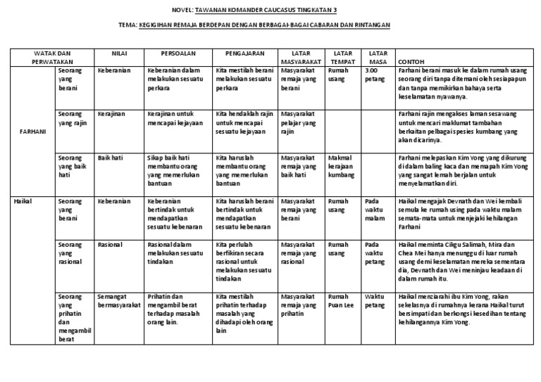 Watak & perwatakan, plot dan nilai pengajaran. Novel tingkatan 3/watak dan perwatakan /novel tawanan komander caucasus komander c. Kim yong rakan sekelas farhani, ren chea mei, mira, haikal, wei dan devnath. Novel tawanan komander caucasus : Posted on january 3, 2019 by admin.