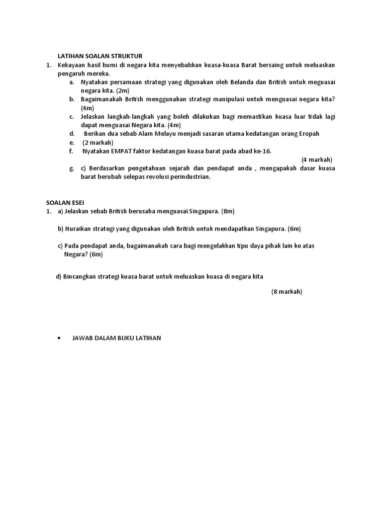 Sejauh manakah strategi yang digunakan oleh kuasa barat untuk menguasai negara kita mencapai kejayaan. Musuh yang mengintai kelemahan kita mengambil kesempatan.kita telah membuka ruang ekonomi dan tanah kita untuk dibeli dan dimiliki oleh orang asing dengan bebas tanpa sekatan.contohnya dengan mewujudkan wilayah iskandar. Menguasai tanah jajahan yang dapat membekalkan bahan mentah. You can do the exercises online or download the worksheet as pdf. Kuasa barat menggunakan strategi berdiplomasi dan agresif.